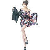 [LoveRich] 和柄 鶴柄 ツートン 帯 リボン 花魁 着物 ドレス ミニ コスプレ ダンス イベント [0954] ブラック FREE
